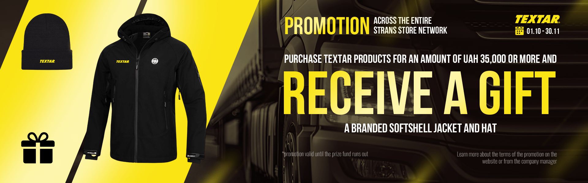 Autumn is the perfect time to take care of your vehicle and enjoy pleasant bonuses. Strans, together with TEXTAR, has prepared a special promotional offer that combines reliability, benefits, and style.Promotion Conditions