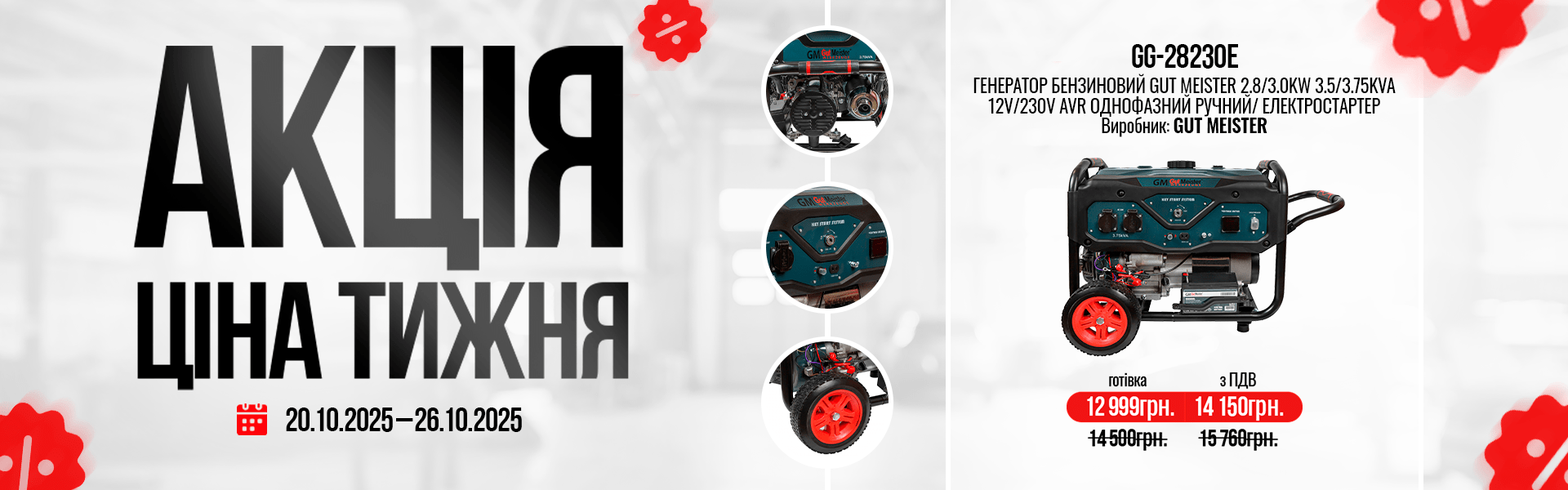 З 20.10 по 26.10 ловіть вигідну пропозицію на надійний бензиновий генератор GUT MEISTER!