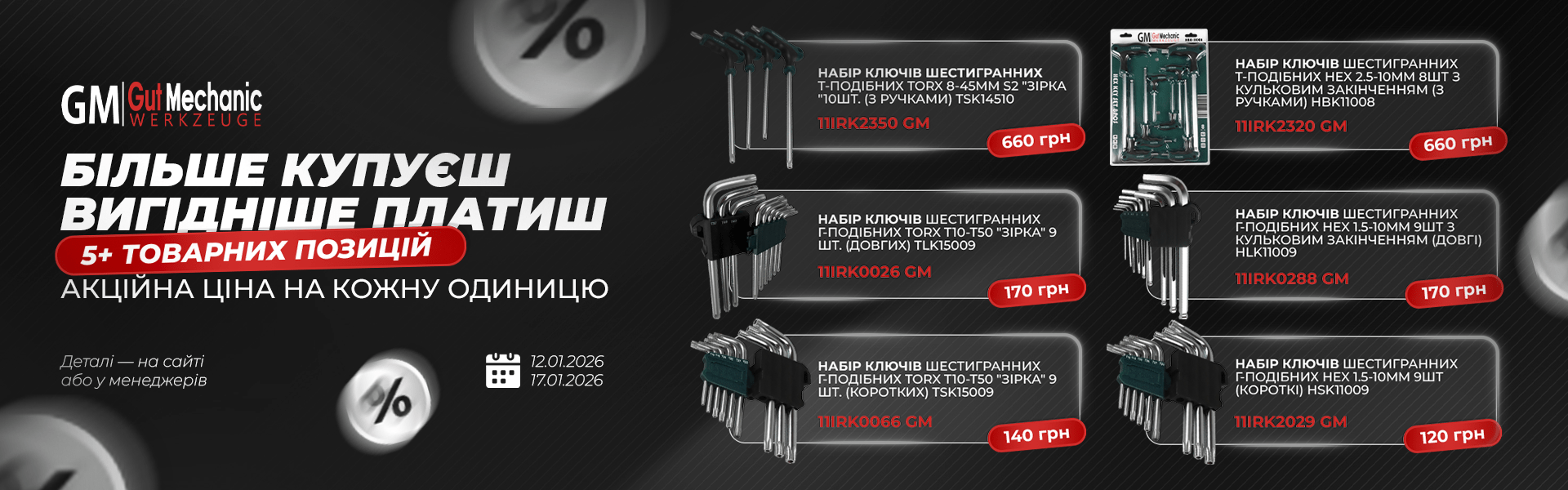 НАБІР КЛЮЧІВ ШЕСТИГРАННИХ T-ПОДІБНИХ TORX 8-45MM 10ШТ.