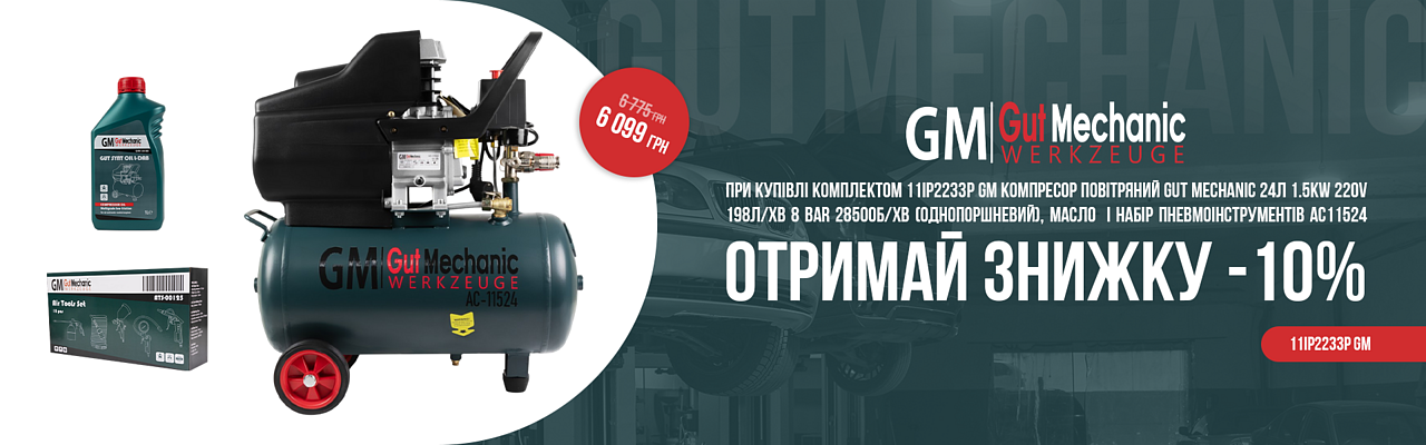 Компресор Повітряний Gut Mechanic 24Л + масло + Набір Пневмоінструментів —
