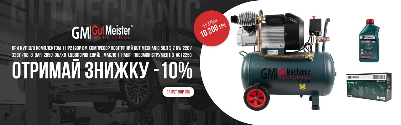 Купуй комплект: Компресор Повітряний Gut Mechanic 50Л + масло + набір Пневмоінструментів —