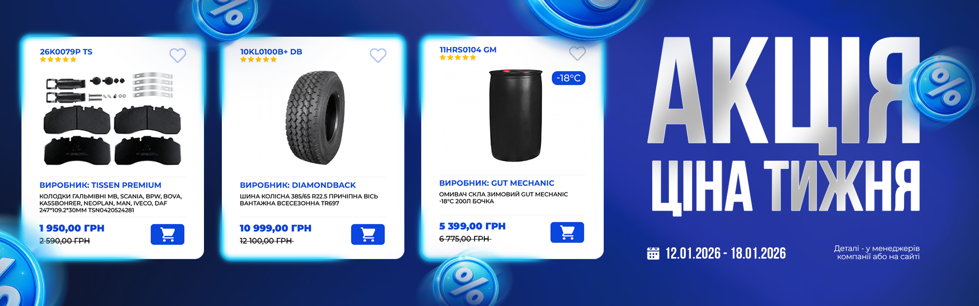 Цього тижня — спеціальні ціни на популярні позиції для вантажної техніки.